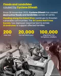 Flooding along the Kelani River continues to threaten vulnerable communities,exacerbating the urgent need for clean water, food, emergency shelter, and medical care. The Sri Lanka Red Cross Society has deployed response teams across 25 branches to support affected families.